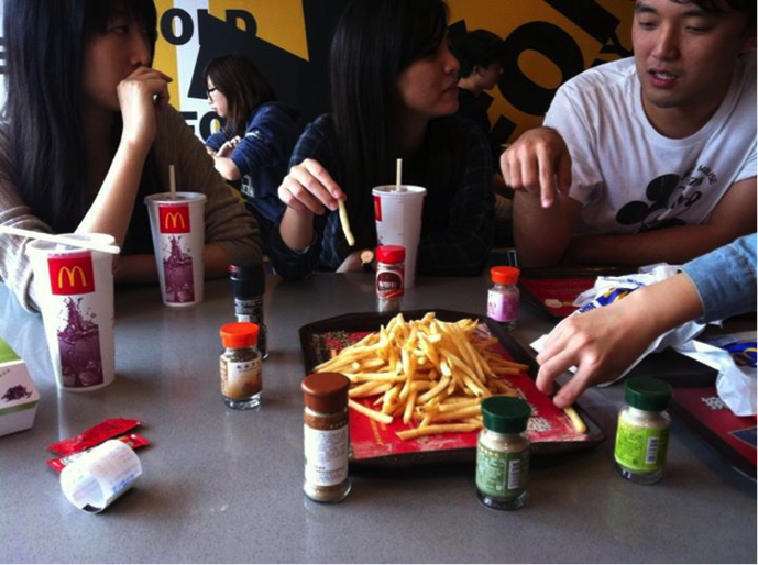 在團隊組成後,我們就馬不停蹄的開始進行計畫,首先做的就是市面產品的調查,我們將市面上主要幾個大品牌的調味料都買回家,接著速食店買了六人份的薯條,把所有調味料放在一起試吃比較,也從外觀上做優劣的分析,發現我們的產品色香味俱全,但矮胖商品外觀極具劣勢,放在大賣場貨架上看起來總是性價比最低的那個,因此產品創新的第一步就是整體的形象再造,我們決定與一般家用香辛料做出區隔;保有原料好的優勢,並賦予其高品質的品牌形象與質感的包裝設計。