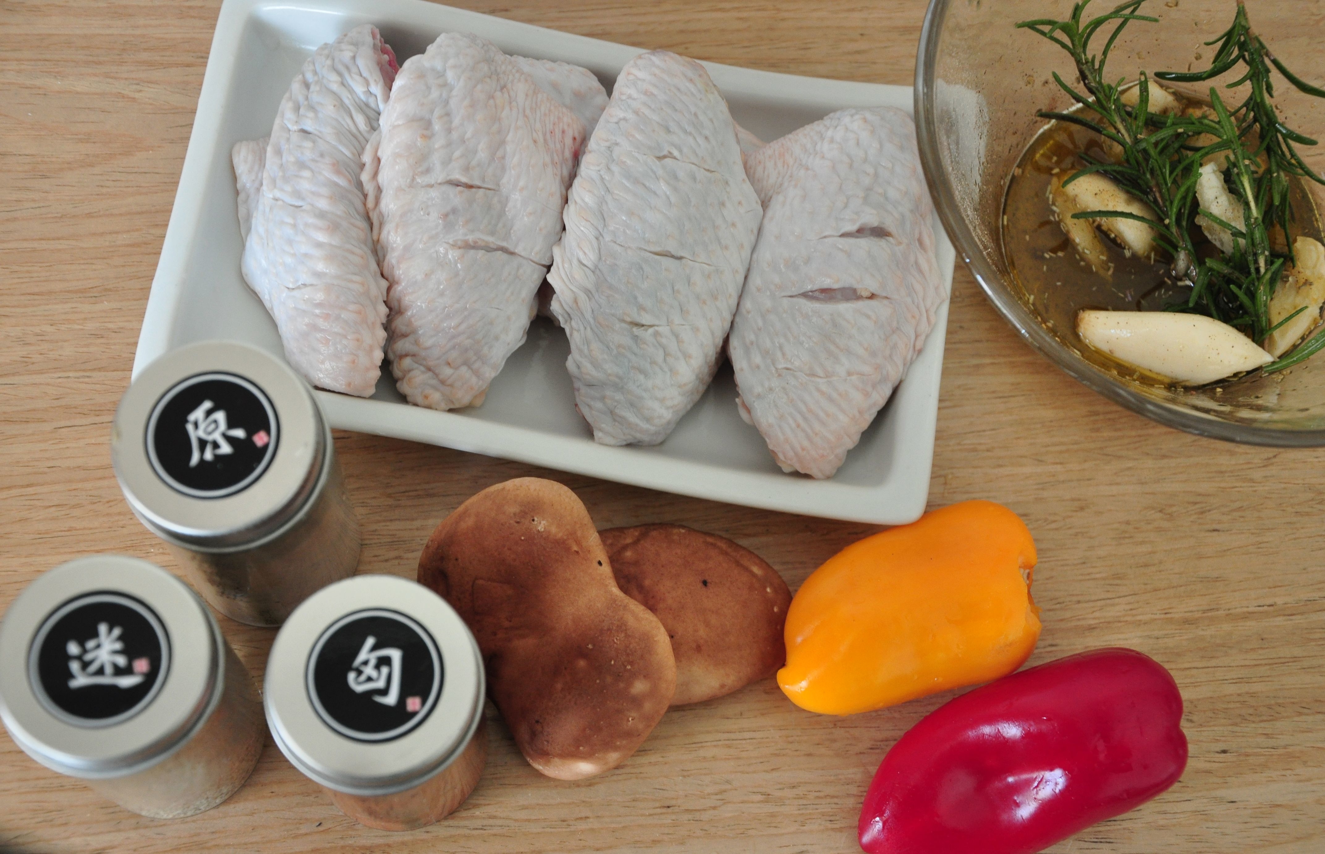 1.備妥烤料: 雞翅先以刀子於兩面劃開數刀,方便醃漬入味。