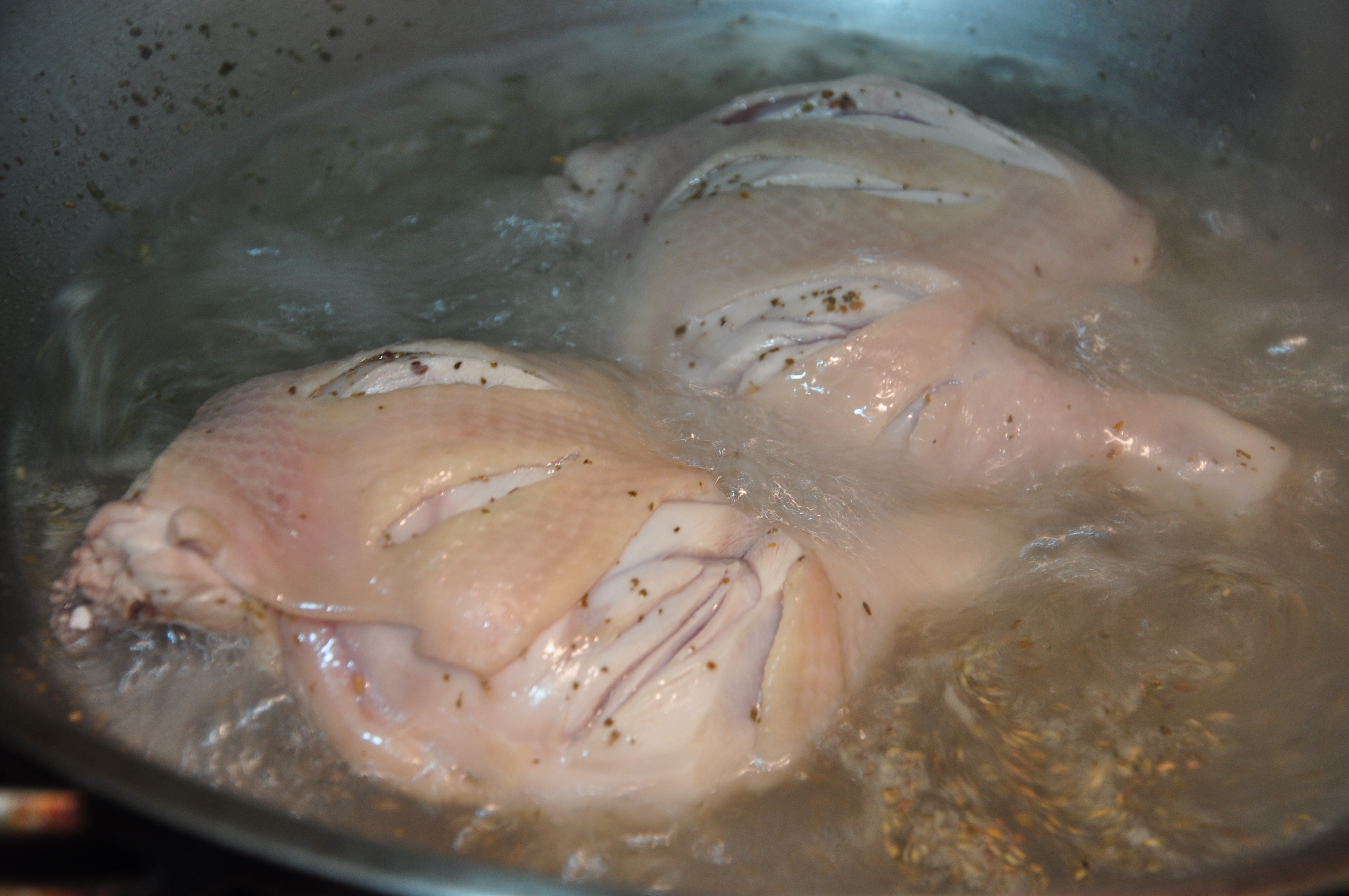 5將醃製香料的雞腿放入滾水烹煮25分鐘,讓雞腿吸收香料入味。