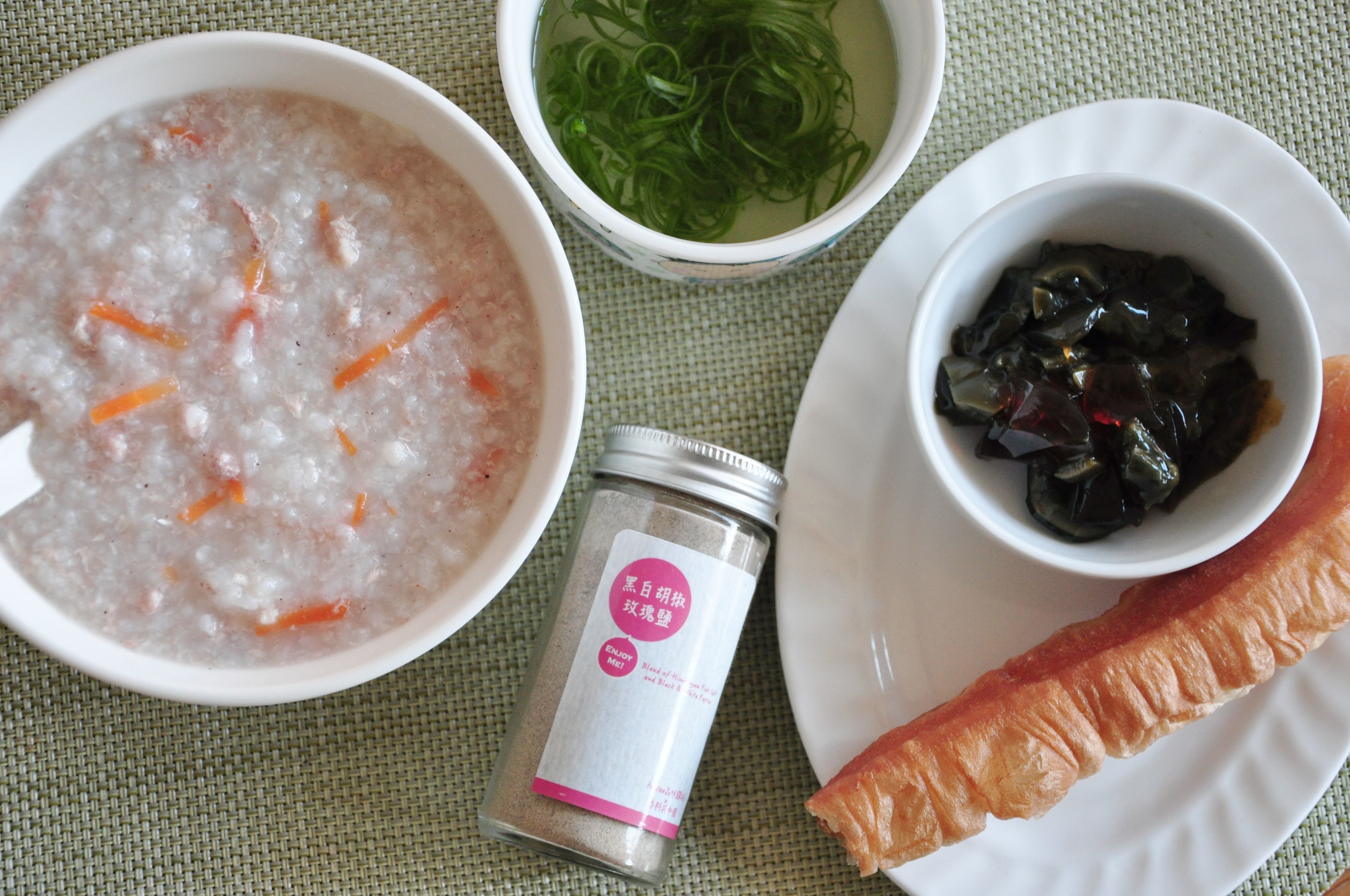 兼具營養美味粥品,湯底絕不馬虎,特別用新鮮的虱目魚骨熬成湯底,再搭配米飯與紅蘿蔔、嫩薑絲與絞肉,一定要加上香料共和國-黑白胡椒玫瑰鹽調味熬煮讓粥品吸收香料香氣;完成後再搭配皮蛋、油條、蔥絲,滴上香油拌勻後即可享用美味。