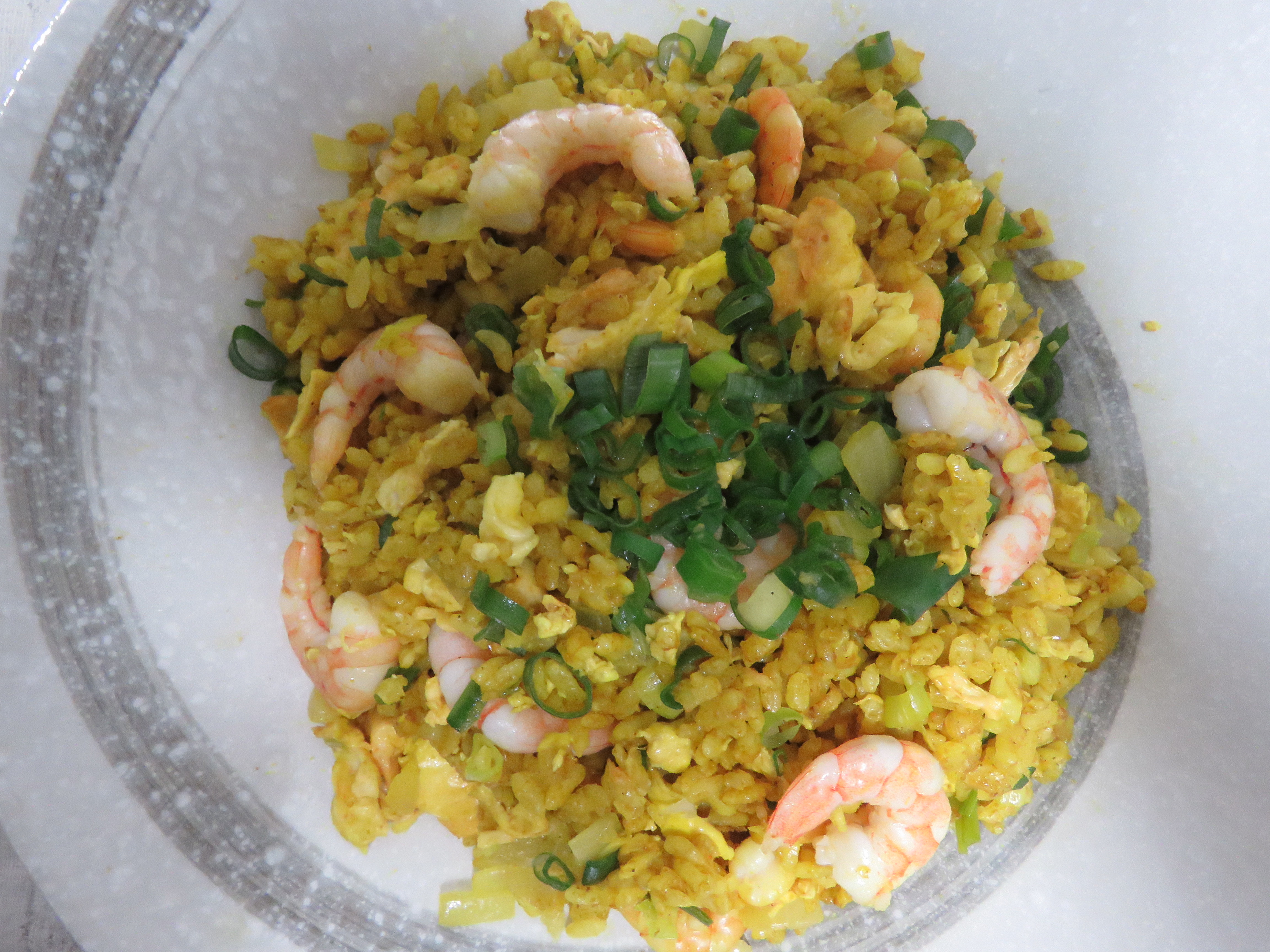 8.最後加入青蔥綠色的部分就可以起鍋了喔!(也可以將蝦仁換成肉絲或雞肉)
