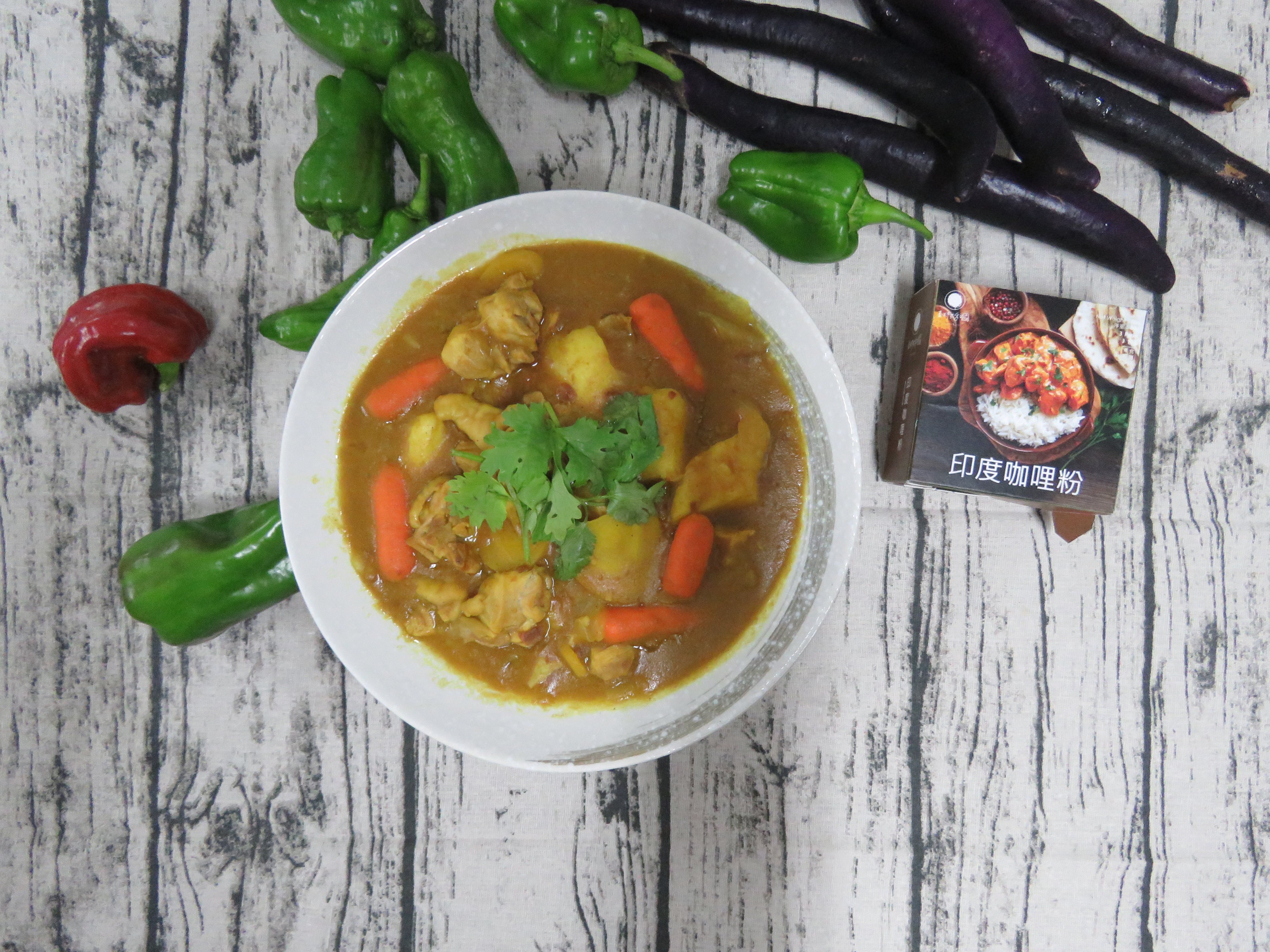 5.放入切塊好的雞腿悶煮15分5最後倒入咖哩粉攪拌均勻小火再煮10分即可起鍋。