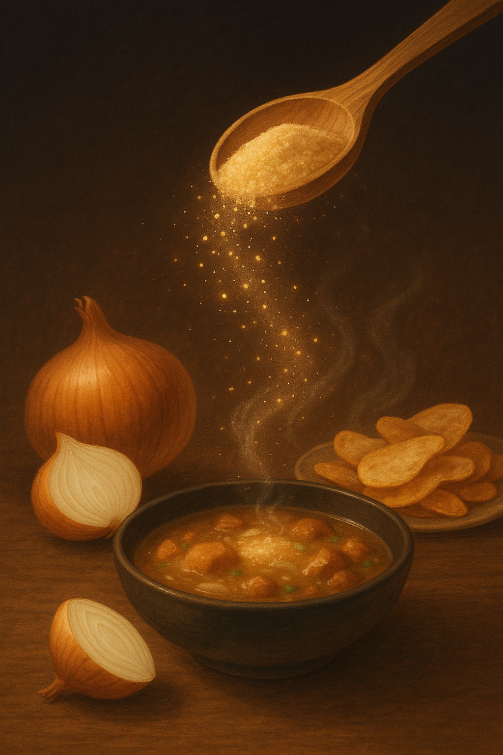 在濃湯、咖哩、滷汁或燉菜中,洋蔥粉像是一道隱形的基石。它不會讓人特別察覺存在,卻能讓整體風味更厚實圓滿,就像是湯頭裡的靈魂。