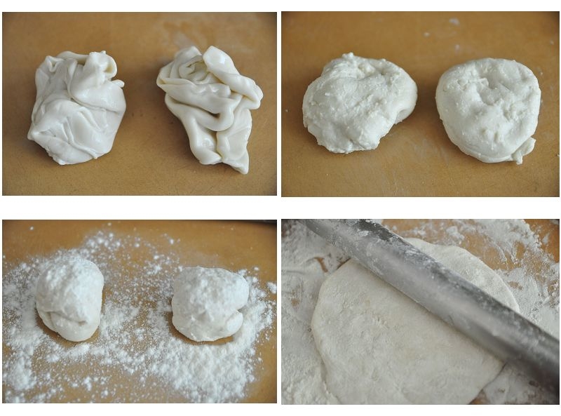 4).使用擀麵棍將麵團擀成圓薄狀即可。