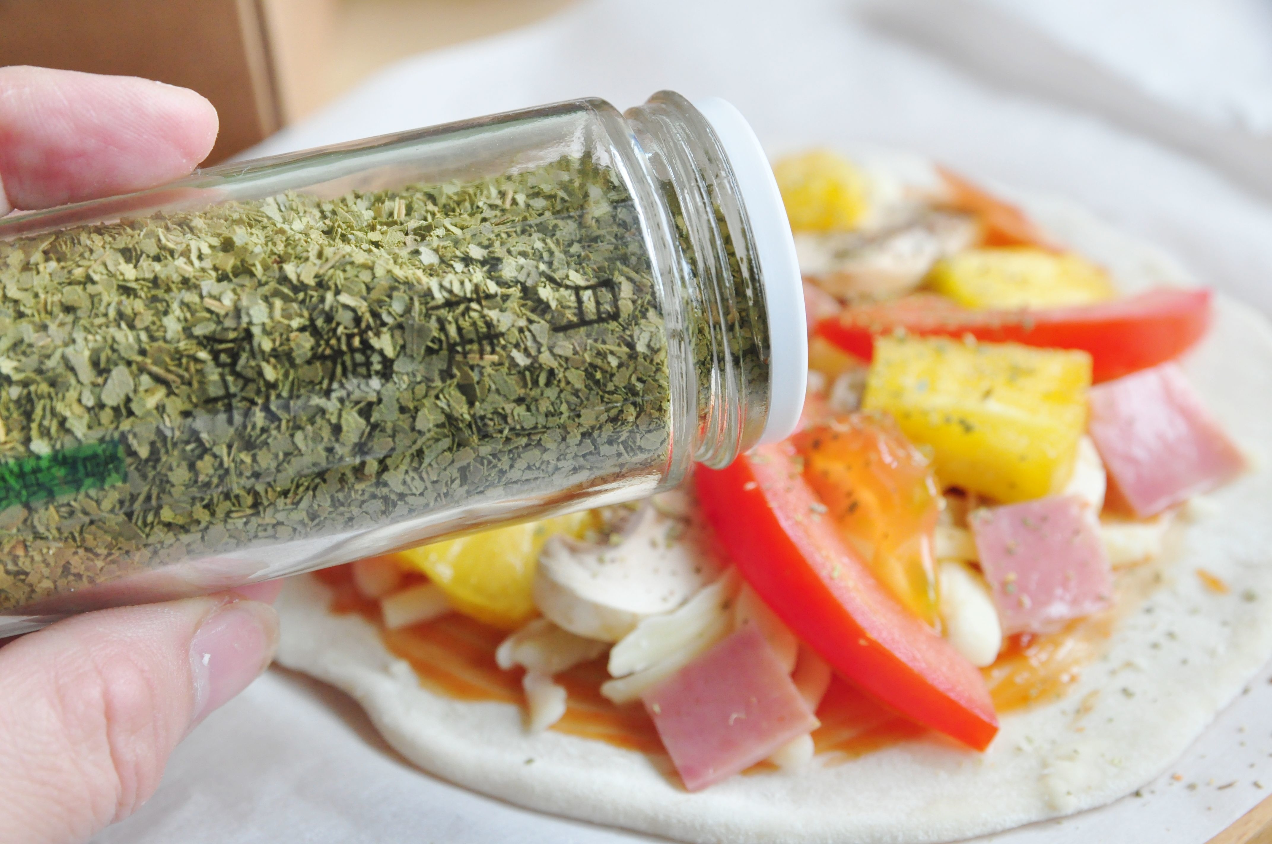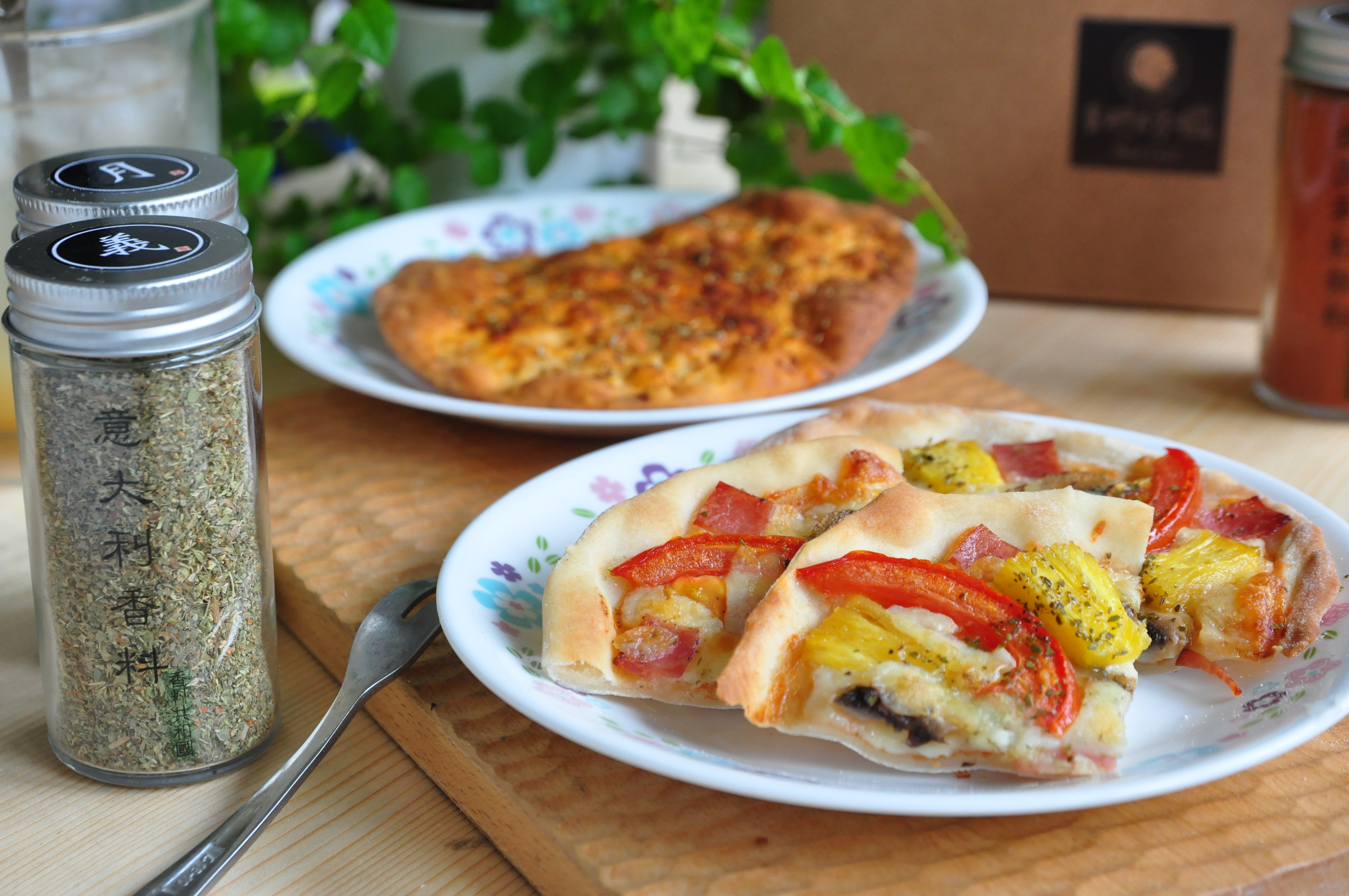 6.簡單又方便,香噴噴的薄餅香料披薩完成。